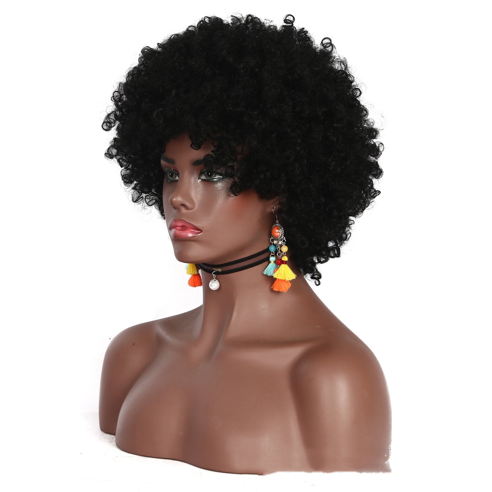 Black Hand Curl Small Curly Tube Binding Twist Fluffy Afro Wig