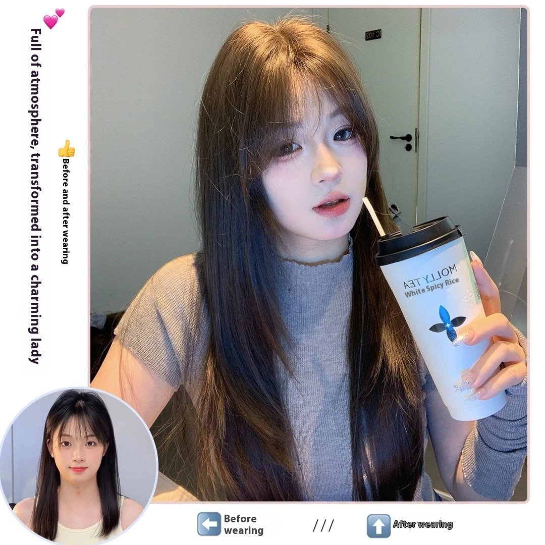 Women’s Long Hair, Natural Clavicle Straight Hair Wig Headgear