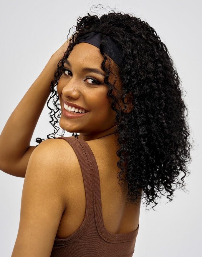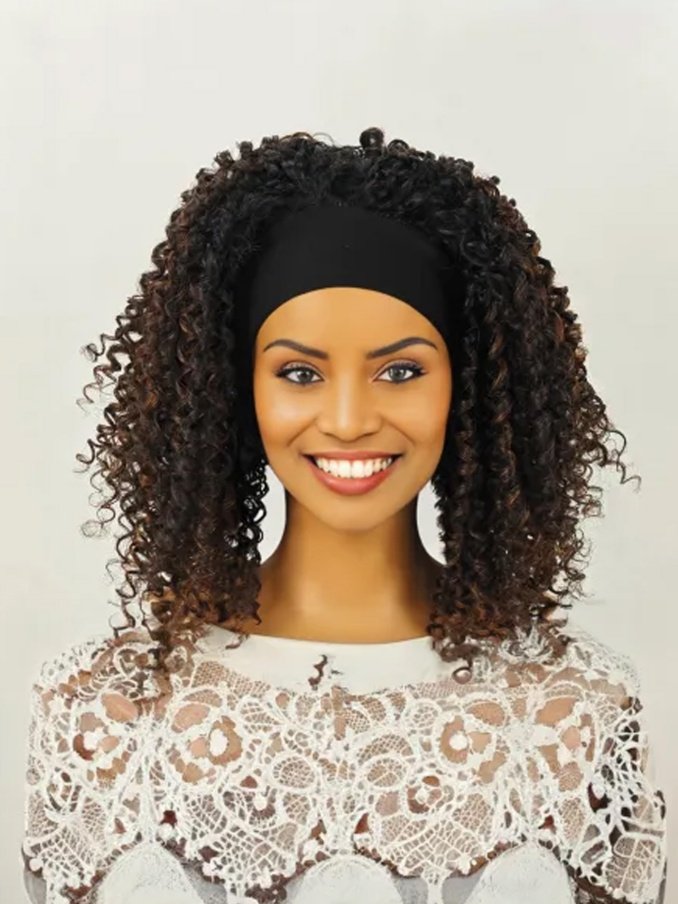 Especially Yours Curly Headband Wig Shoulder-Length Layers Of Natural Spiral Curls With Full Bouncy Volume Comfy Stretch Band Runway Shades Of Black Headband Kinky Curly –Only Supports Self-pickup.